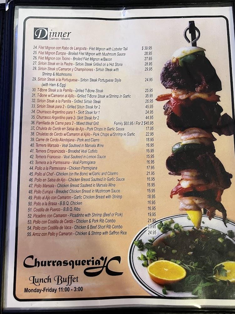 The menu is diverse, featuring Southern classics, grilled meats, and an impressive salad bar. Signature dishes like the ribeye and churrasco shine, appealing to meat lovers.